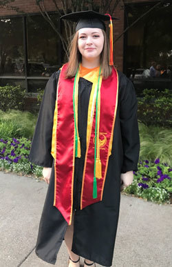 After earning her high school diploma and her associate’s degree as part of the second-ever graduating class at Collegiate Academy, she headed to East Texas to enroll at Stephen F. Austin State University, where she had received scholarship help and was drawn to the beautiful campus and small classes. She also was interested in a new program at the time, JacksTeach, which is a secondary education program specifically for STEM teachers. She earned her degree and math teaching certification earlier this year.